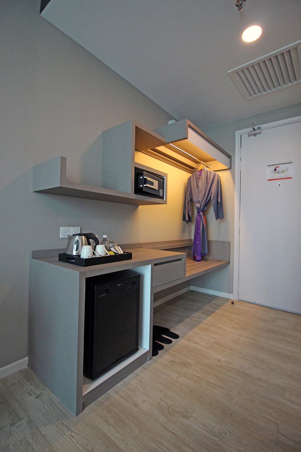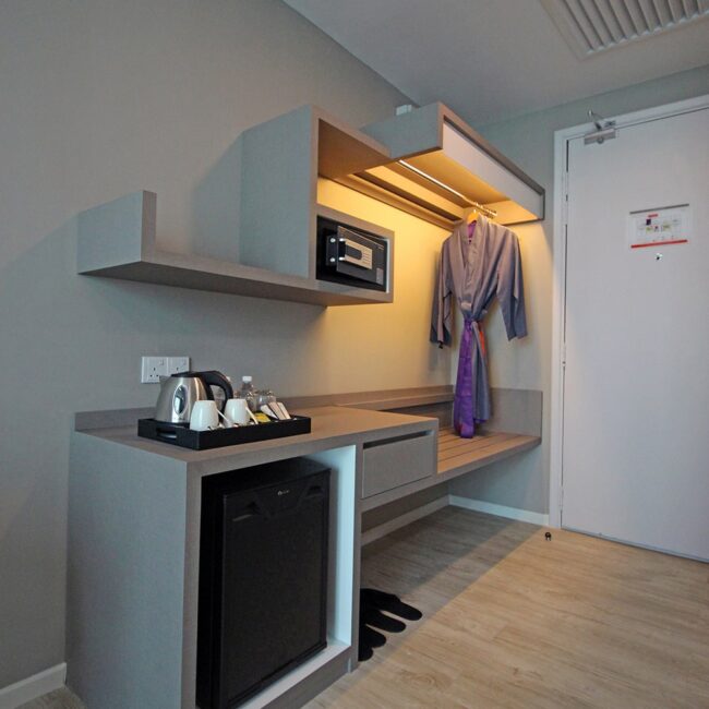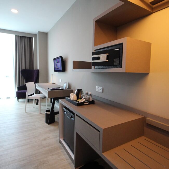 Qliq Damansara Hotel adopted our total room solutions for a peace of mind. HAVEN+ team brought to life their vision of a stylish and modern hotel where design meets functionality. From custom-made furniture to carefully selected lighting, curtains, mirrors, and built-ins, every detail was crafted to create a welcoming and comfortable stay. Our team worked closely with the property to ensure a seamless design, perfectly blending comfort with contemporary aesthetics, making every guest’s experience not just a stay, but an enjoyable retreat.