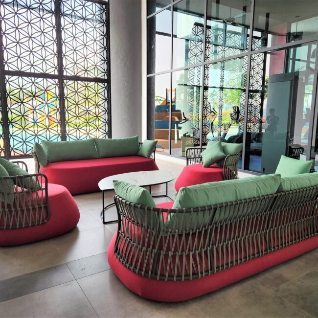 Nestled in the vibrant heart of Petaling Jaya, Sunway Serene redefines modern living by balancing city convenience with a touch of tranquillity. HAVEN+ enriched the residence with thoughtfully curated pieces such as the Pinna and Elvis lounge chairs, Bono and Bora bean bags, and the sleek Enea bench by Nardi, among others. Each detail was carefully selected to complement the serene environment while ensuring style, comfort, and functionality for its community of urban dwellers.